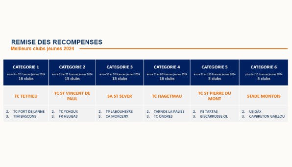La Commission animation du Comité des Landes de tennis organise le challenge des « meilleurs clubs jeunes » du département. Tous les clubs participent.