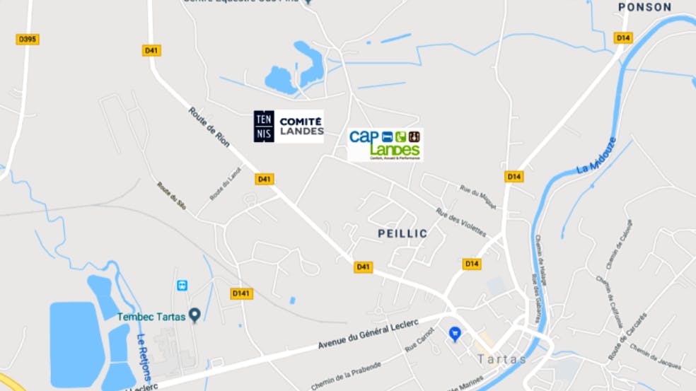 Le Siège Social du Comité des Landes de tennis se trouve à Tartas (40 400), Chemin d'Ous Pins, 61 route des Sports.